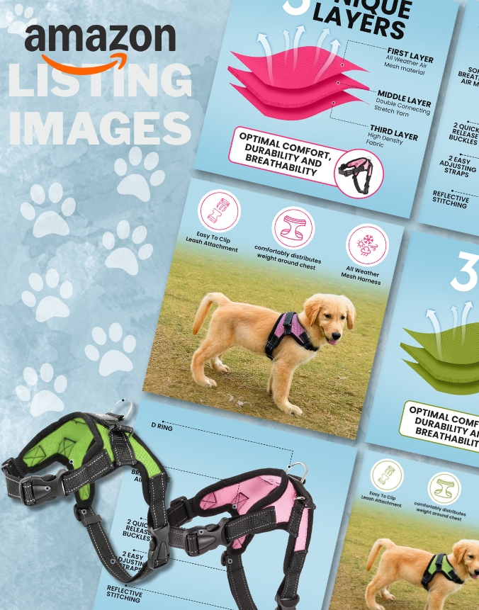 Triple‑layer mesh harness with quick‑release buckles and reflective stitching for comfortable, no‑pull walks in any weather.